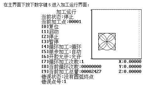 單步加工:按" 5"鍵對自動與單步進行切換。單步為按一次啟動運行一個加工點,    自動為自動按順序運行加工點。
