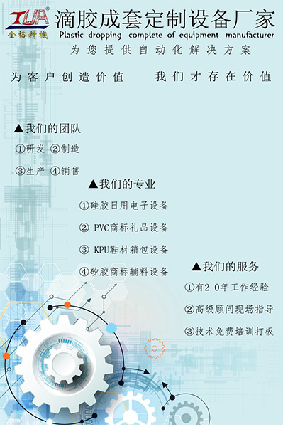 東莞市金裕自動化機械設備有限公司成立于2000年,金裕坐落于東莞市大嶺山向東工業區,創辦硅膠、PVC商標禮品生產設備.金裕研發的全自動全自動點膠機矽膠機油壓機KPU鞋材機以及終于實現了的智能無人車間生產流水線,金裕的自動化設備可以做到讓你省人、省電、省管理。金裕公司歡迎新老顧客來訪,選擇金裕,沒有顧慮。www.touristlink.com.cn