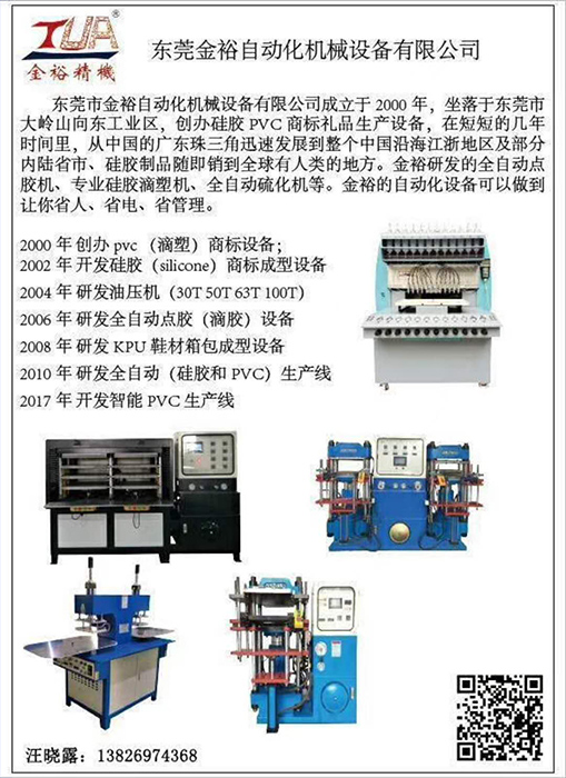 東莞市金裕自動化機械設備有限公司成立于2000年,金裕坐落于東莞市大嶺山向東工業區,創辦硅膠、PVC商標禮品生產設備.金裕研發的全自動全自動點膠機矽膠機油壓機KPU鞋材機以及終于實現了的智能無人車間生產流水線,金裕的自動化設備可以做到讓你省人、省電、省管理。金裕公司歡迎新老來訪,選擇金裕,沒有慮。www.touristlink.com.cn
