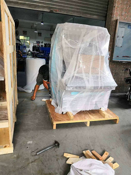 下面就給分享下金裕點膠機、壓花機打包出貨現場