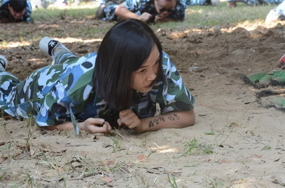 第二個(gè)項(xiàng)目是“人間煉獄”,分別由兩個(gè)人雙手和對方緊緊握住,形成一條人工長梯,然后每個(gè)人都要從上面爬行通過。這個(gè)活動給我的感觸最深,當(dāng)自己的手握住隊(duì)友的手向前攀爬時(shí),感受到滿滿的溫暖和力量,隊(duì)友們承載的是支持和痛苦。當(dāng)自己快爬不動的時(shí)候,看著周圍兩行齊刷刷鼓勵(lì)的眼神,想著自己多停頓一會,就會給隊(duì)友多帶去一絲痛苦,咬緊牙關(guān)繼續(xù)前行。隊(duì)友中還有55歲的公司老板,可是他絲毫沒有因?yàn)樽约旱奶厥猓痛蠹乙粯优Γ瑘?jiān)持到終點(diǎn)。最后每個(gè)人都順利通過考驗(yàn)。
