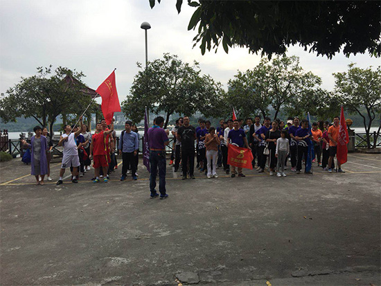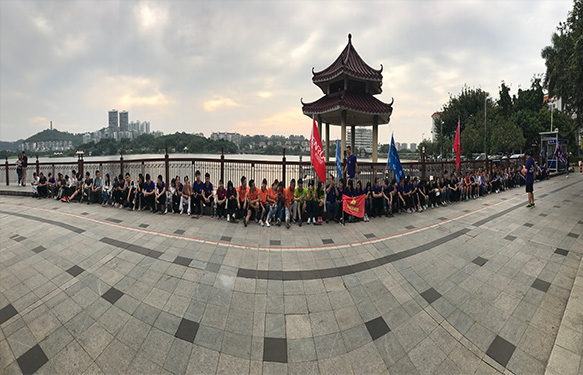 ******下午金裕的小伙伴們一起去火箭軍團組織的環水濂山湖8公里,活動開始各家企業整 齊列好一隊,聽著司令講這次的環水濂山8公里的規則,和注意事項。