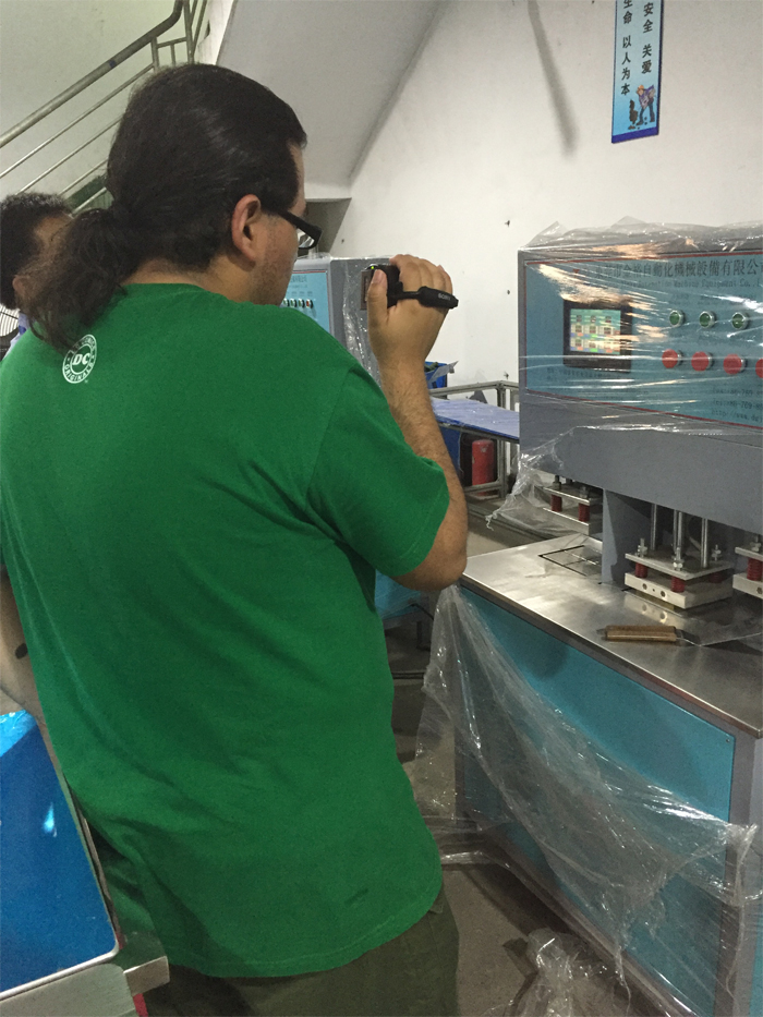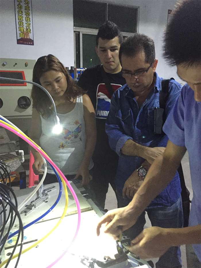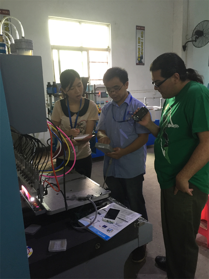 墨西哥客戶在學習自動點膠機是怎么操作的