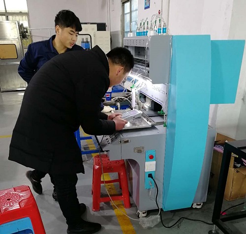 劉總領悟能力很強,學習起來超快。才半天功夫,基本就全掌握了,只是沒有那么熟練。中午吃完飯,技術人員又教劉總學習電腦編程。這個學起來就更簡單了,編輯完直接保存到U盤,再連接點膠機USB接口,導入就OK了。劉先生表示基本上沒什么問題了,先把點膠機買回去,自己回去慢慢研究,有問題再聯系我們的技術人員。