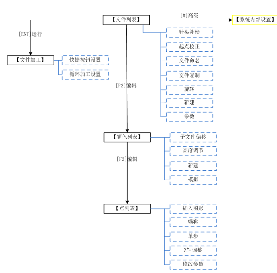 金裕點(diǎn)膠機(jī)界面層次和功能簡介![]() 示教盒操作界面層次示意圖 上圖為金裕點(diǎn)膠機(jī)示教盒操作界面層次示意圖。用戶主要用到的就是4個(gè)相關(guān)界面:【文件列表】、【顏色列表】、【點(diǎn)列表】、【文件加工】。 1. 顏色列表。列舉出當(dāng)前選擇的加工文件的所有顏色。提供了偏移 高度調(diào)節(jié)、模擬運(yùn)行、設(shè)置膠頭等功能。 2. 點(diǎn)列表。列舉出當(dāng)前顏色的所有圖形和點(diǎn)。提供了單步、編輯、 修改圖形參數(shù)等功能。 3. 文件加工。進(jìn)行文件加工,停止等。提供了設(shè)置快捷按鈕、循環(huán) 加工參數(shù)等功能。 另外,在【文件列表】界面按[#]能進(jìn)入【高級(jí)設(shè)置】界面,該界面中的功能為系統(tǒng)高級(jí)設(shè)置,只允許工程師來配置其中的設(shè)置,不推薦操作員進(jìn)入該界面修改設(shè)置。 東莞市金裕自動(dòng)化機(jī)械設(shè)備有限公司成立于2000年,金裕坐落于東莞市大嶺山向東工業(yè)區(qū),創(chuàng)辦硅膠、PVC商標(biāo)禮品生產(chǎn)設(shè)備.金裕研發(fā)的全自動(dòng)全自動(dòng)點(diǎn)膠機(jī)、矽膠機(jī)、油壓機(jī)、KPU鞋材機(jī)以及終于實(shí)現(xiàn)了的智能無人車間生產(chǎn)流水線,金裕的自動(dòng)化設(shè)備可以做到讓你省人、省電、省管理。金裕公司歡迎新老來訪,選擇金裕,沒有顧慮。www.touristlink.com.cn |