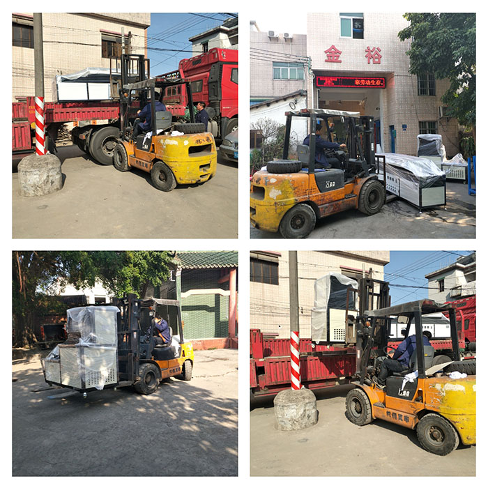 年前金裕出貨現場,這批流水線是發到南通的一個客戶那的,南通客戶再下單之前,就是說好年前要發貨過去,在過程中稍稍有點情況,但還是很好消化了下去,才保證這條流水線準時出貨,南通這個客戶也是老客戶了,這次也是第二次在金裕下單。相信看到圖中的矽膠機,大家會有一定的詫異?在這里給大家解釋下,金裕設備在合理的情況下是可以按照客戶的要求定制 。?下面給大家安利下金裕的-成品衣矽膠機:成品衣矽膠機結構穩定,最大壓力下工作不會出現肉眼可辨的變形,金裕成品衣的發熱板25mm厚的45#鋼發熱板,儲熱及傳熱性能好,其內嵌發熱管以及熱電偶組成負反饋溫度控制系統,能夠將溫度誤差控制在±2攝氏度以內,單側(上側)四根調節螺桿,調節上下發熱板的平衡時只需對一塊發熱板進行調節即可。調節平行時更方便。可方便套成品衣時可更方便,更容易。出貨現場實拍 ![]() ![]() |