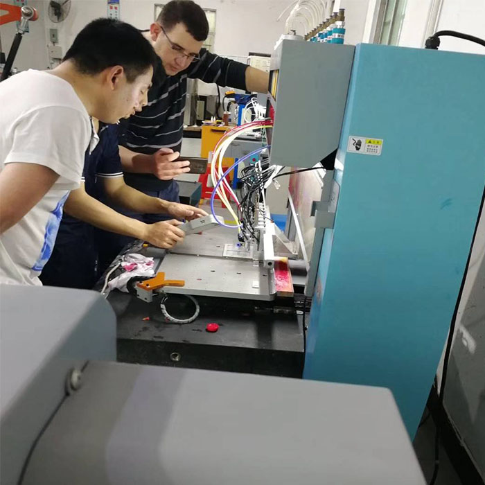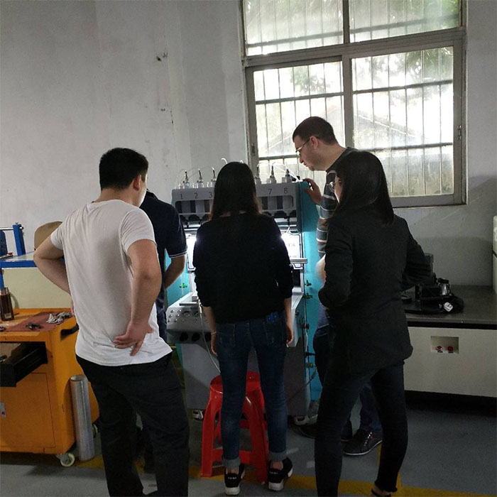 這幾天廠內(nèi)都有客戶來到廠內(nèi)學習點膠機,這不,這一次,還碰到了兩個,說來還真的搞笑。這兩個人一個國外客戶(阿爾利亞的客戶)一個是國內(nèi)客戶,這個阿爾利亞的客戶先來一會,由于語言溝通問題,我們的外貿(mào)銷售人員一直在旁邊翻譯著,這個阿爾利亞的客戶是金裕的老客戶了,在金裕購買了兩條產(chǎn)線,這次過來就是學點膠機的。另一個客戶是做巧克力的一個客戶,也是來學點膠機的。這兩個語言都不通順的人居然在旁邊聊起來了,雖然就簡單幾句,互相在旁邊看對方操作設備,這兩個客戶還是學的比較快的,很快就能自己簡單操作了,在這里跟大家解釋下,如果學設備的操作的話,派人在金裕廠內(nèi)也是可以的,金裕廠內(nèi)包吃住的哦。