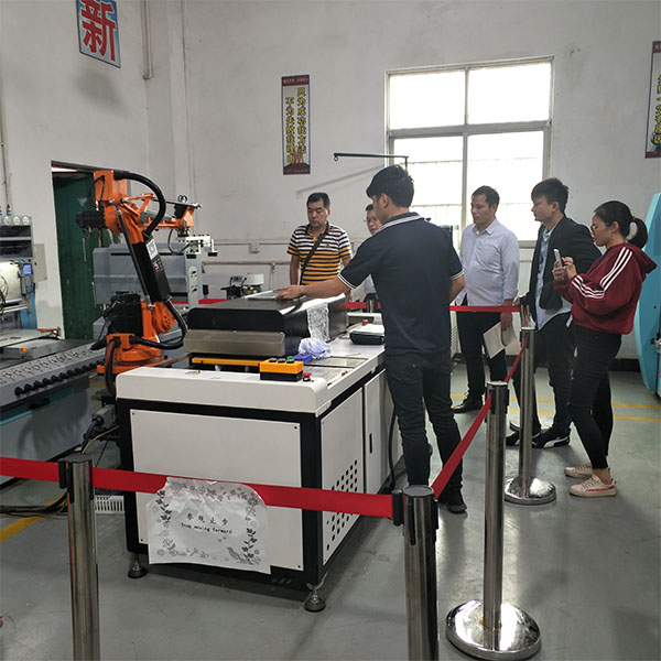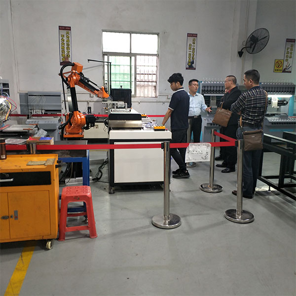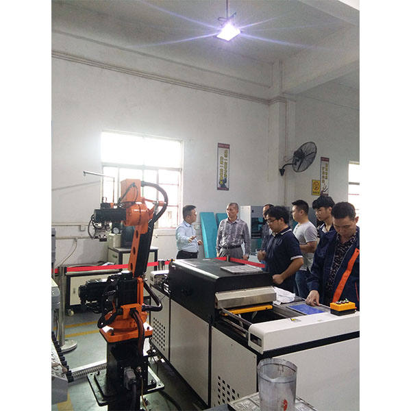 今天旭凱 、利峰 兩位公司的老總慕名來到金裕廠內了解金裕-四軸關節機械人。現場機械人高精度、快速拾放料作,速度快、涂膠、上下料精準的打樣過程,把兩位老總驚艷到了,并且非常贊同金裕的機械人能大大節省2-5人,并且能解決投入成本高的問題,客戶在現場一直強調機械人的交貨期。在客戶了解過程中我們的楊總熱情的給每一位客戶講解機械人的操作使用方法,并且讓客戶了解到了金裕機械設備的獨有優勢,別無二家。